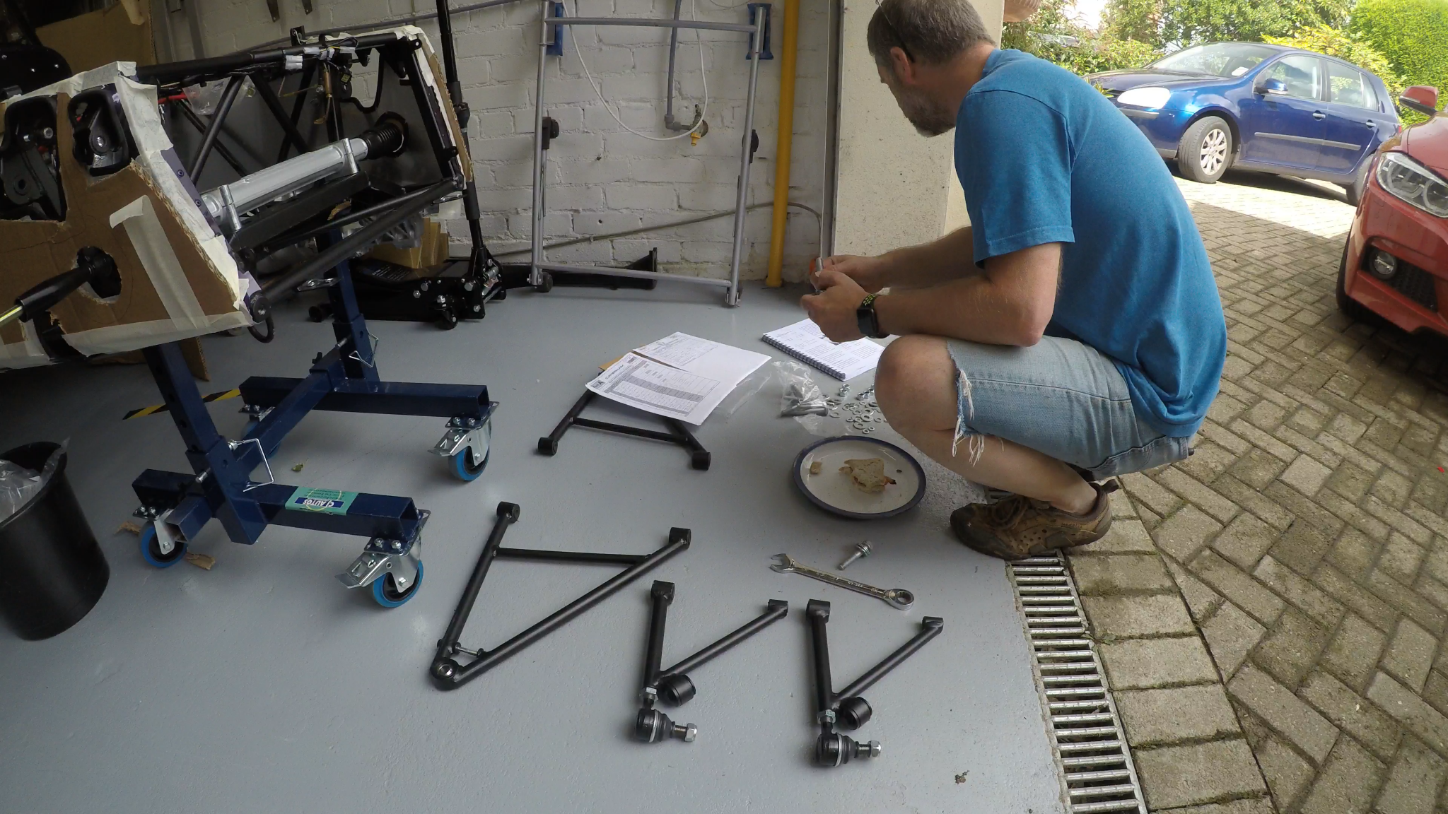 The first task was to read the manual, consult a few blogs and figure out what I’d got to do first on the front suspension. It was around this time that I realised that the manual says that the upper wishbones are handed. That shouldn’t have been a problem except that I’d taken them out of their poly bags to photograph them and hadn’t kept track of what bag they came from – doh!
