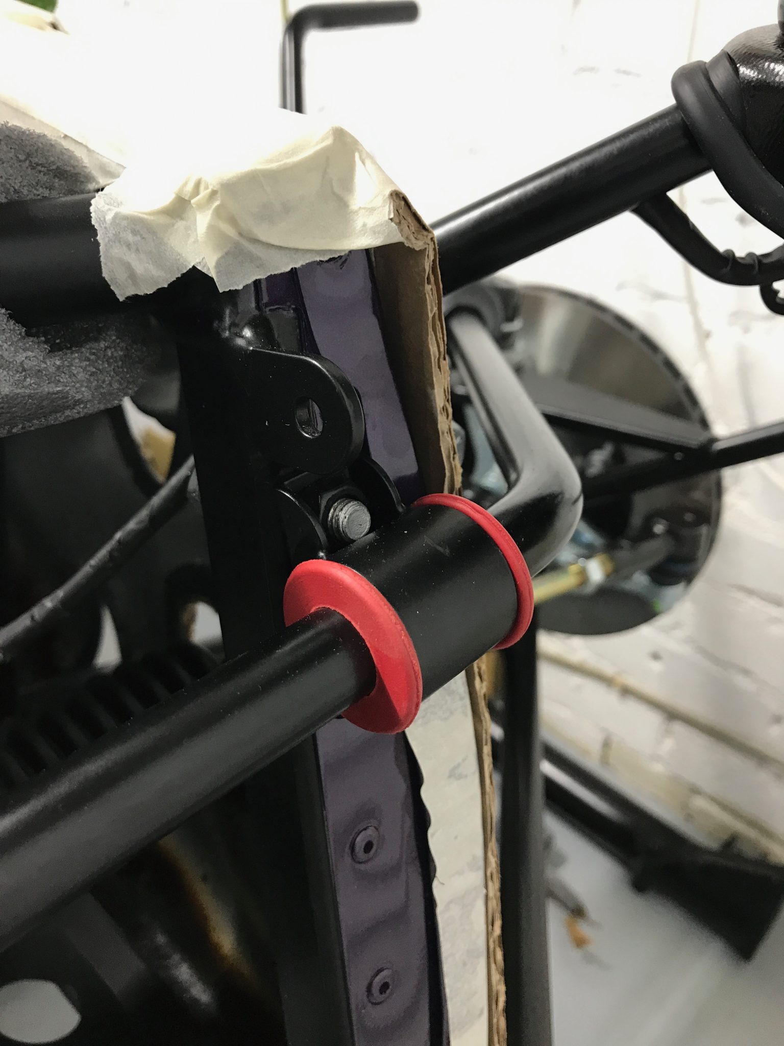 With the red bushes in hand and a reasonably generous coating of rubber lubricant (WD-40 PTFE) the bushes slipped into the clamps easily…