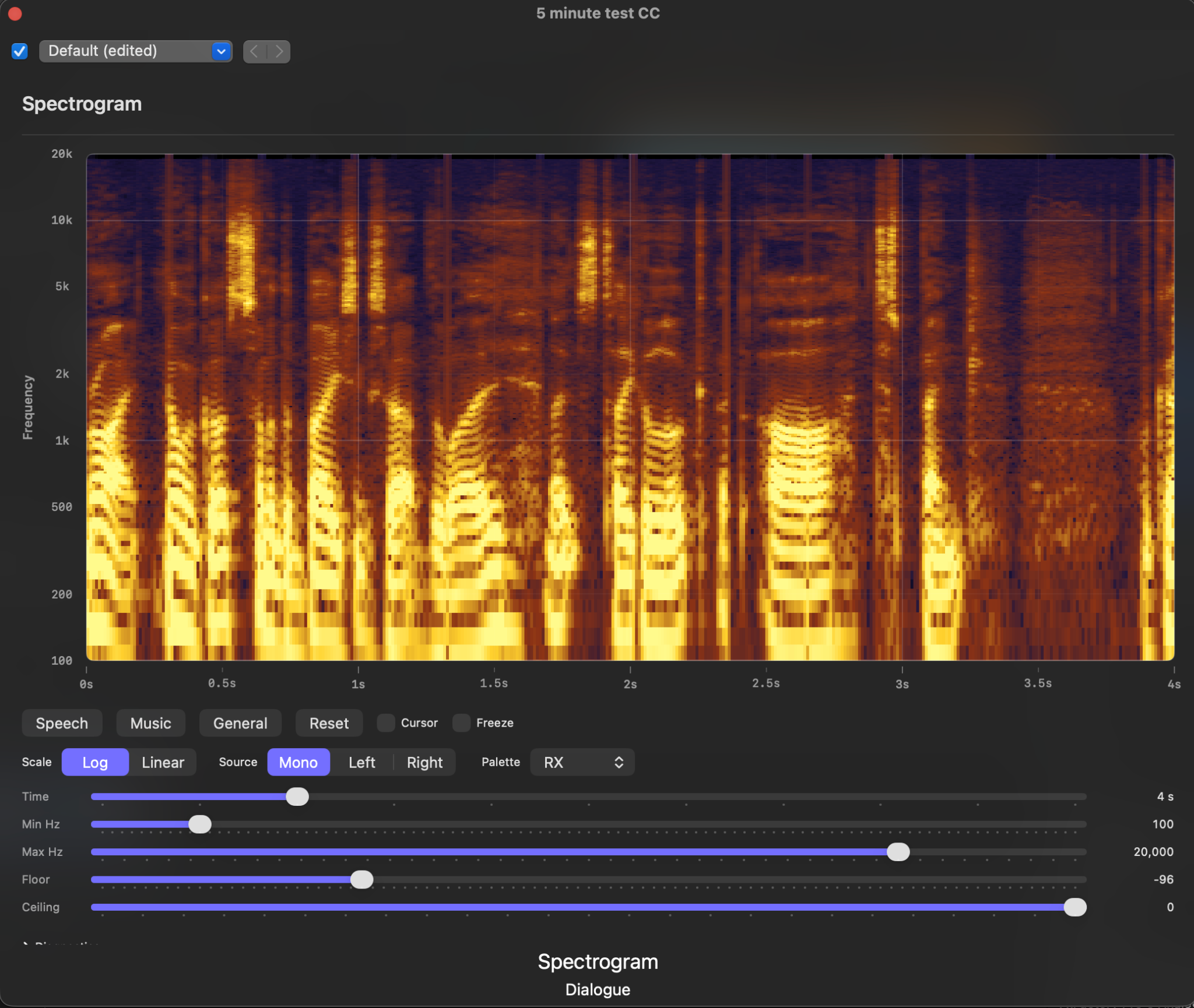The practical reason is straightforward. I wanted a tool that would help me inspect audio in Final Cut Pro in a more forensic way. Spectrograms are great for this. They show structure that level meters and waveforms simply do not. If you are looking at dialogue, hum, hiss, rumble, broadband mess, high-frequency junk, or the spectral shape of a clip, a spectrogram gets useful very quickly.